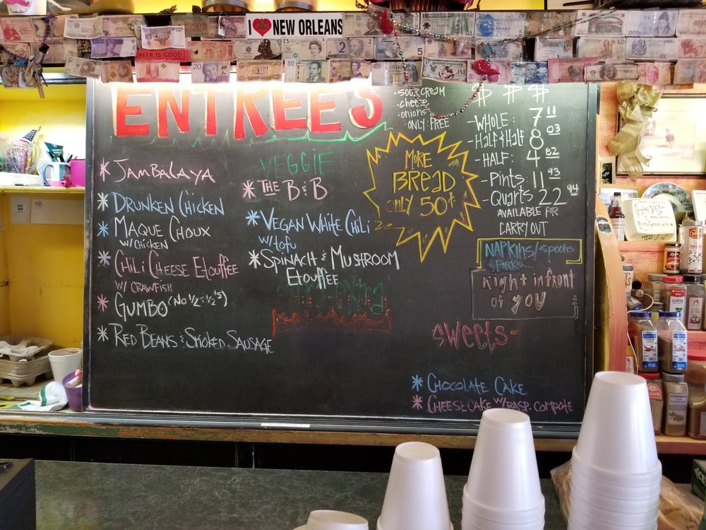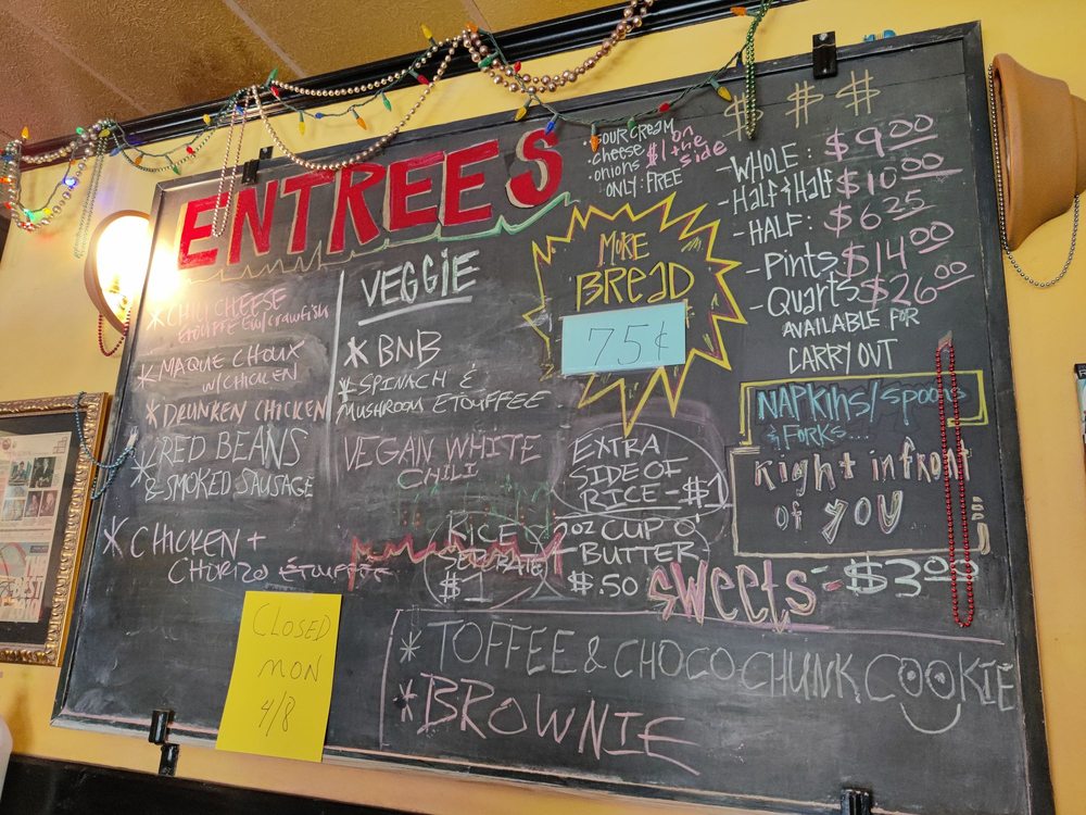 Introducing the menu at Yats, a Cajun/Creole restaurant, offering a variety of signature dishes like Chili Cheese Etouffee with Crawfish, Red Beans with Smoked Sausage, and Drunken Chicken. Their menu includes options for pescatarians, vegans, and limited vegetarians. Sides like Yats spiced bread and Yats Spiced Butter complement the flavorful entrees. Customers rave about the quality and quantity of the food, with favorites being the maque choux with chicken and chili cheese etouffee. The warm, buttery bread served with every meal adds to the delightful dining experience. With quick service, friendly staff, and a cozy vibe reminiscent of New Orleans, Yats is a must-visit for those craving authentic Cajun flavors. Whether for dine-in or takeout, Yats promises a delicious and satisfying meal.
